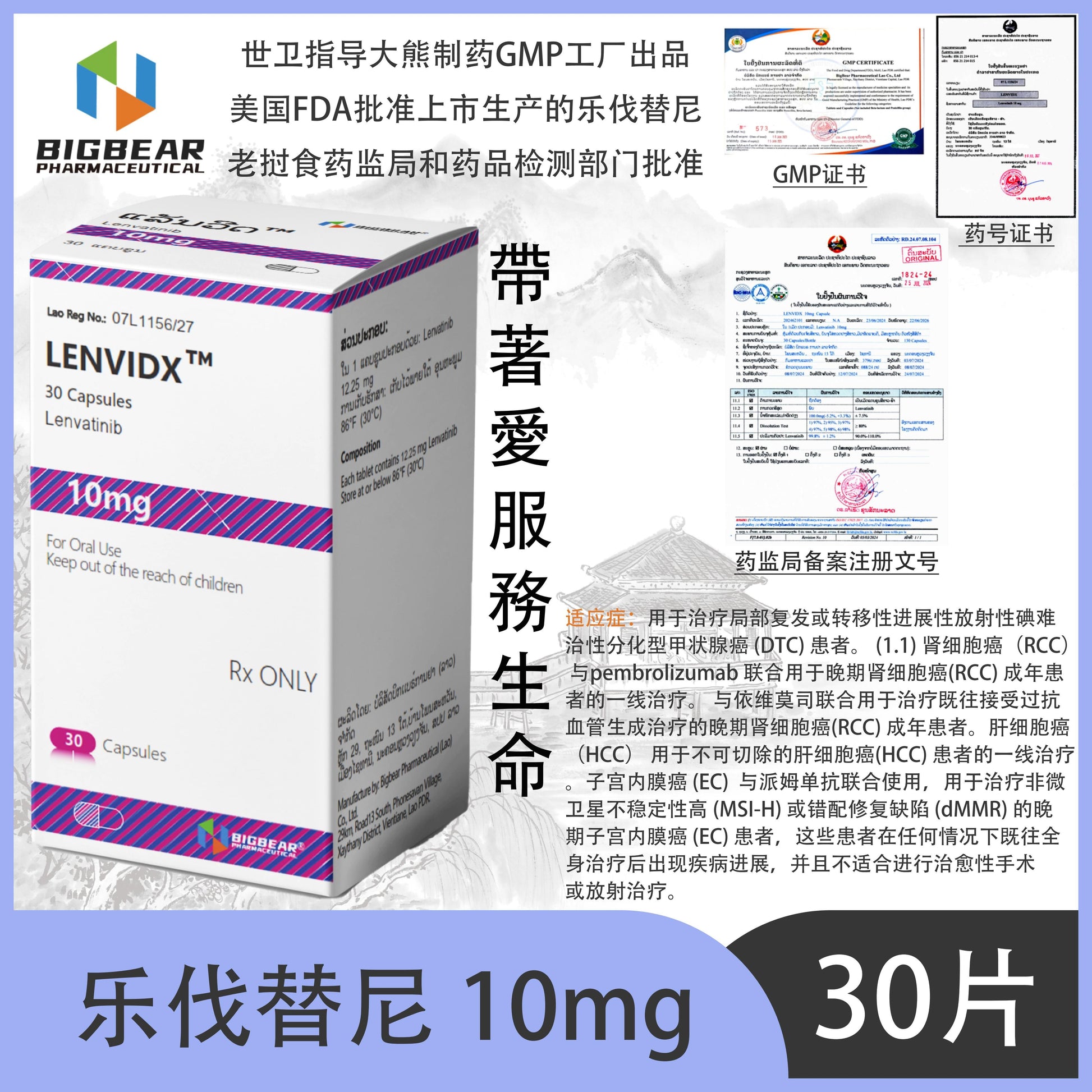 大熊制药 BIGBEAR 乐伐替尼10mgLENVIDX™M 30 Capsules Lenvatinib